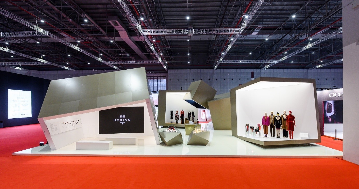 图片说明:2020年第三届中国国际进口博览会“开云馆”更新、重组并调整了第二届中国国际进口博览会“开云馆”的模块化设计,展厅重复利用的材料占材料总重量的三分之二,信守开云集团对环境管理的承诺。