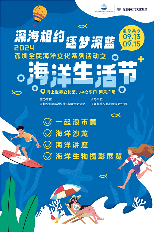 在“海洋强国”的战略背景下,深圳以海为梦,承载着建设全球海洋中心城市的历史使命。“深海相约逐梦深蓝”2024深圳全民海洋文化系列活动启动仪式及海洋生活节将于9月13日-15日在海上世界文化艺术中心东门——海景广场隆重举行,带领每一位市民探索深蓝世界,传承海洋文化,共同开启深海追梦之旅!