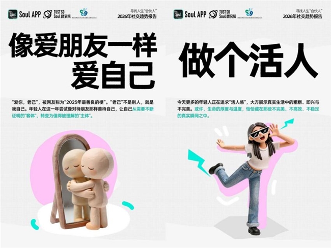 Soul张璐团队发布的《2026年社交趋势报告》,呈现了年轻人的当代社交图景——在寻找“人生合伙人”的过程中,年轻人正在用自己的方式,重建关系、安放自我。作为持续研究青年文化的平台,Soul App依托基于兴趣的连接机制,积累了大量真实互动样本,也为理解年轻人提供了重要视角。